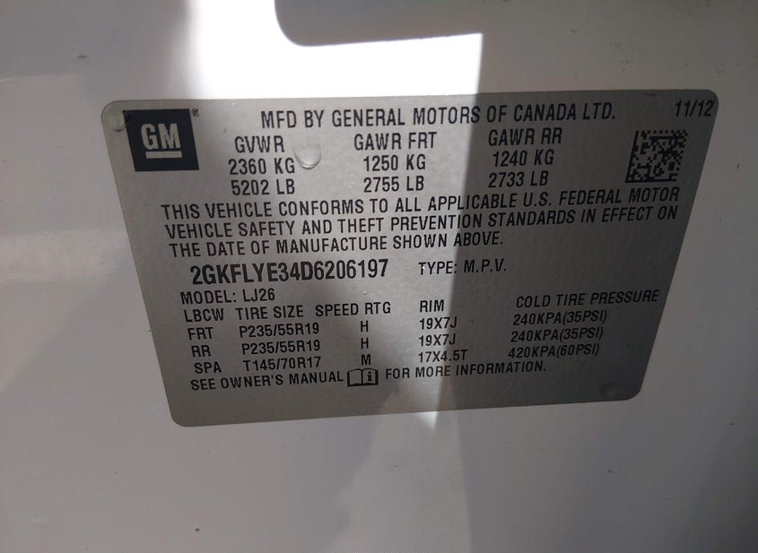 - VIN: 2GKFLYE34D6206197