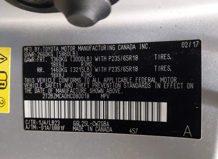 - VIN: 2T2BZMCA0HC080018