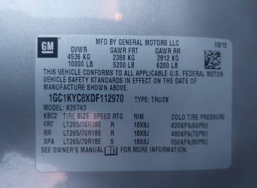 - VIN: 1GC1KYC8XDF112970