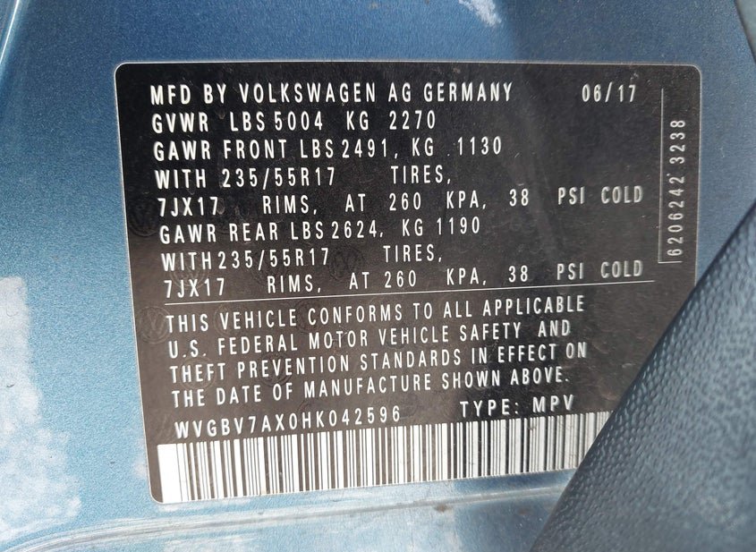- VIN: WVGBV7AX0HK042596