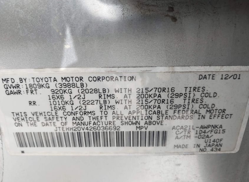 - VIN: JTEHH20V426036692