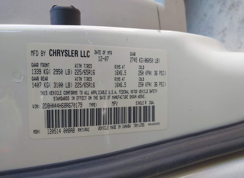 - VIN: 2D8HN44H68R670179