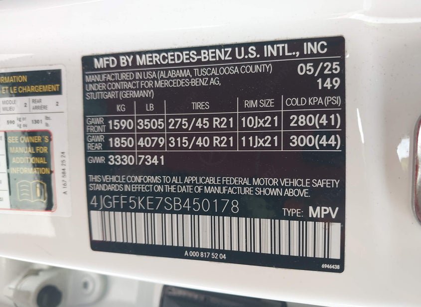 - VIN: 4JGFF5KE7SB450178