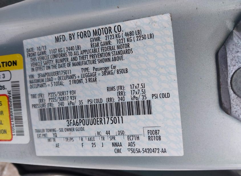 - VIN: 3FA6P0UU0ER175011
