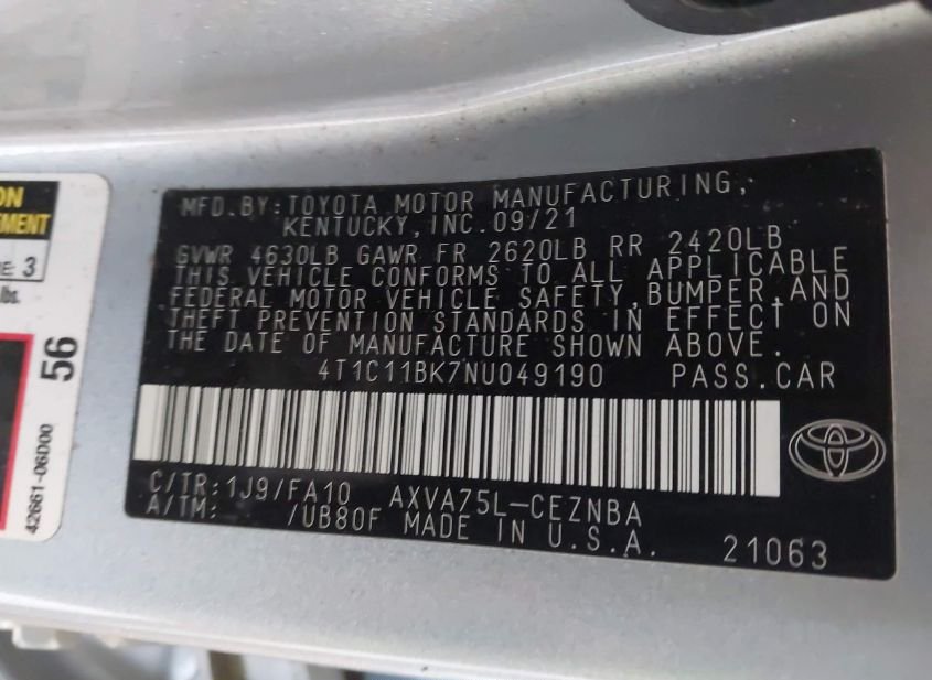 - VIN: 4T1C11BK7NU049190