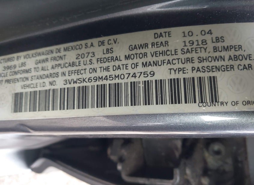 - Название лота: 2005 VOLKSWAGEN JETTA GLS 2.0L