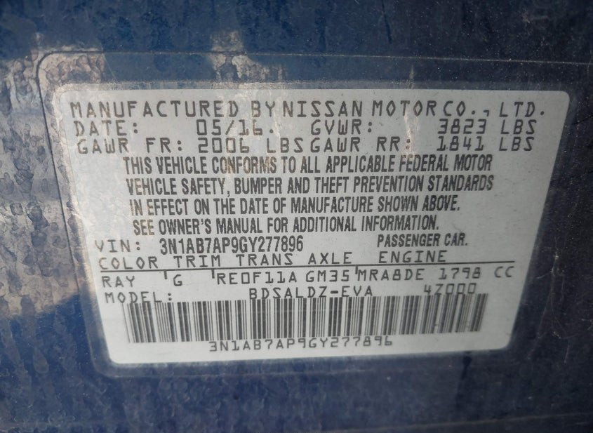 - VIN: 3N1AB7AP9GY277896