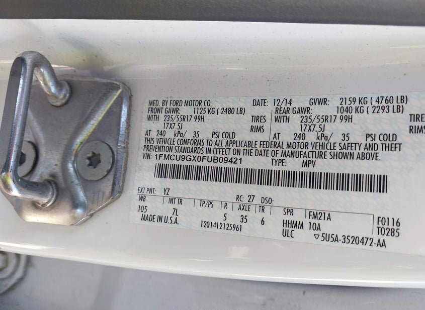 - VIN: 1FMCU9GX0FUB09421