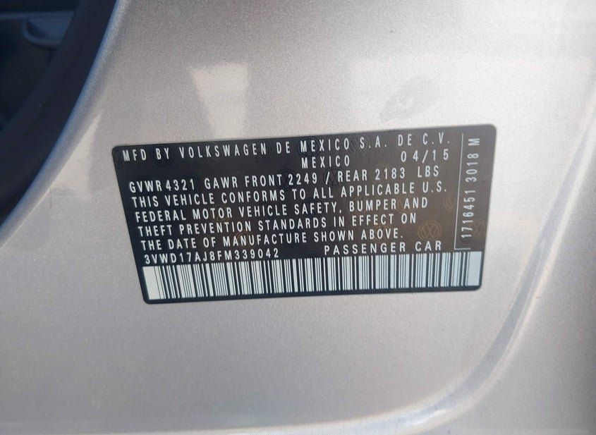 - VIN: 3VWD17AJ8FM339042