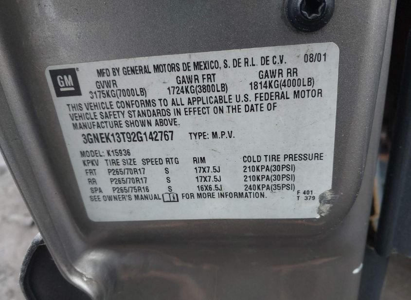 - VIN: 3GNEK13T92G142767