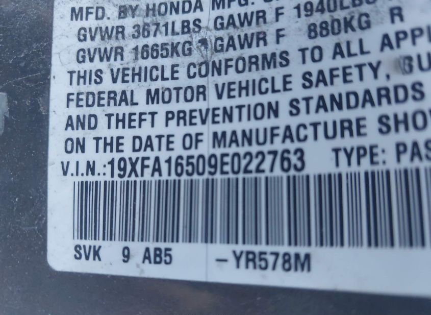 - VIN: 19XFA16509E022763