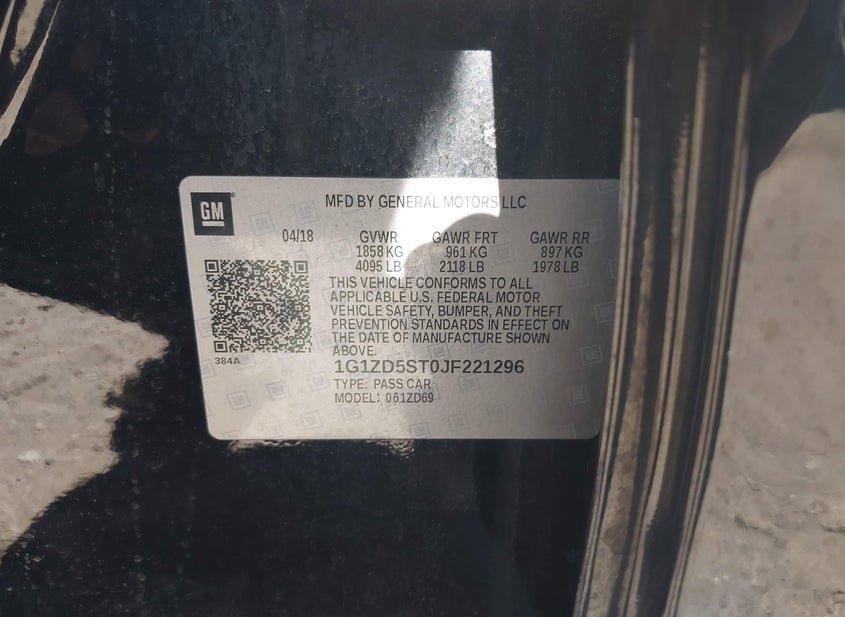 - VIN: 1G1ZD5ST0JF221296