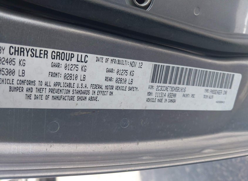 - VIN: 2C3CCAET9DH581016