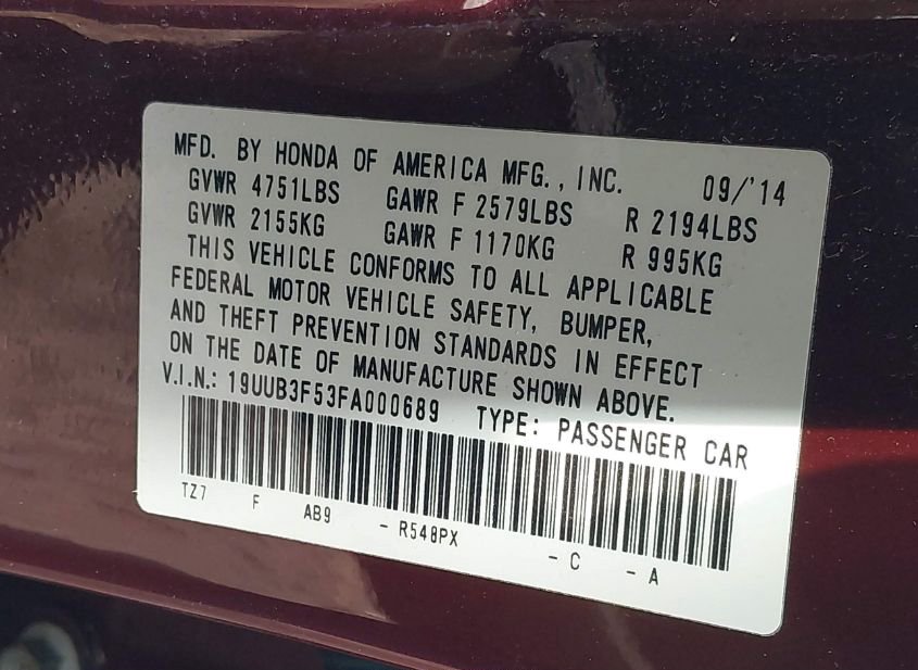 - VIN: 19UUB3F53FA000689