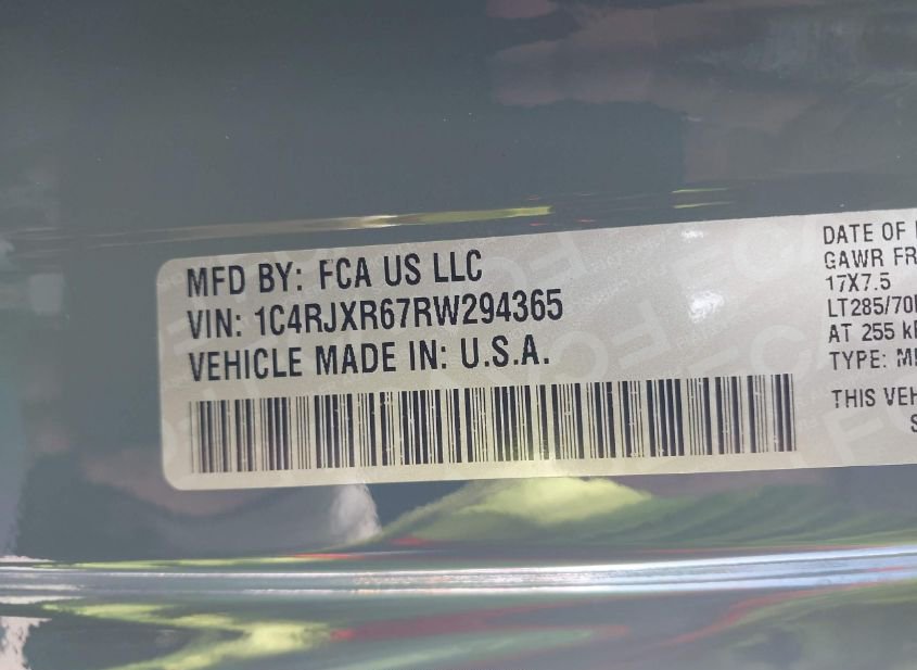 - VIN: 1C4RJXR67RW294365