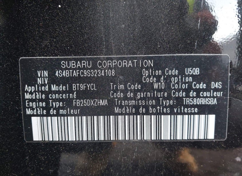 - VIN: 4S4BTAFC9S3234108