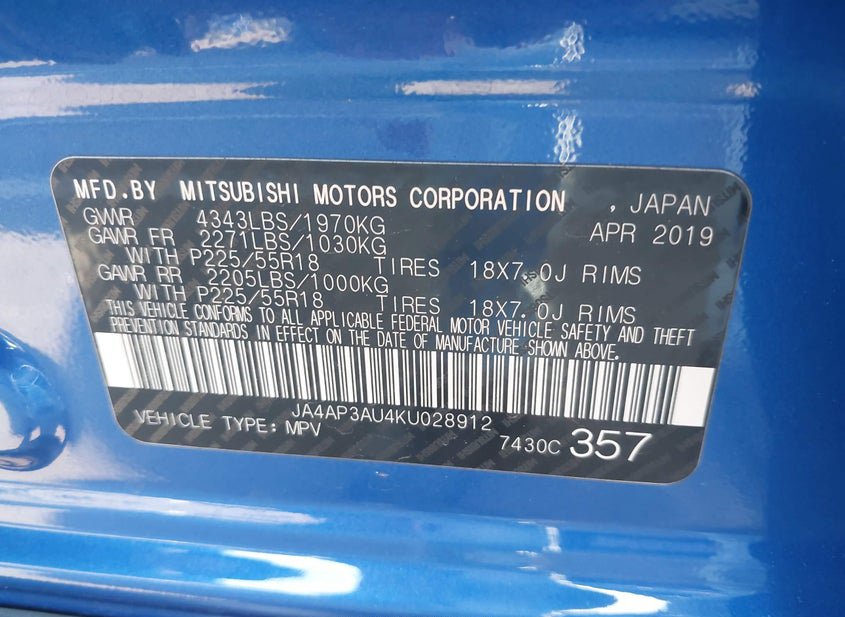 - VIN: JA4AP3AU4KU028912