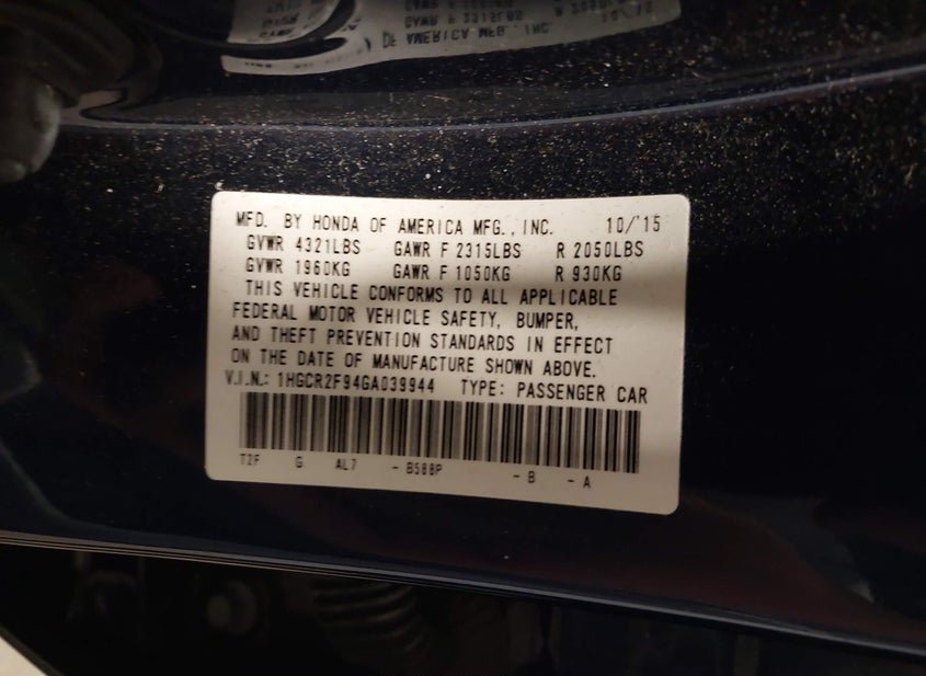 - VIN: 1HGCR2F94GA039944