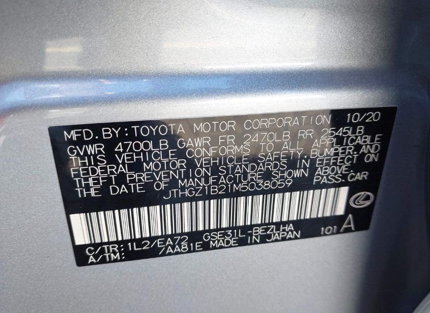 - VIN: JTHGZ1B21M5038059