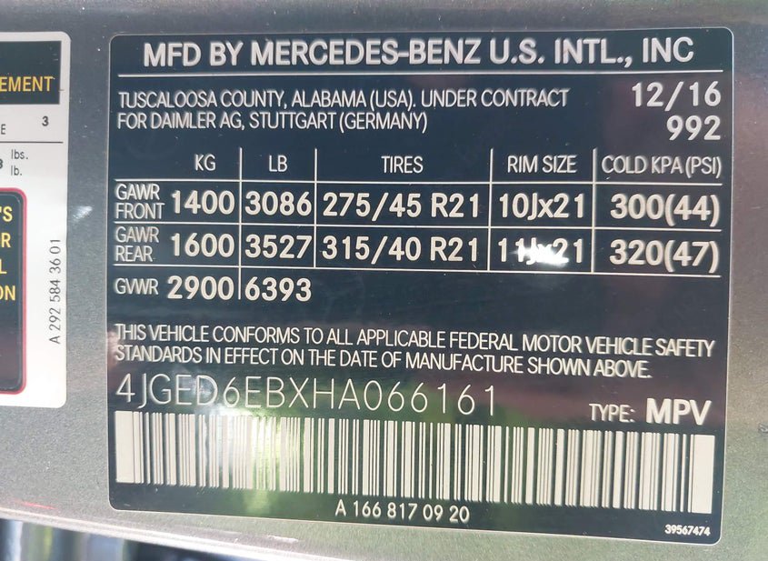 - VIN: 4JGED6EBXHA066161