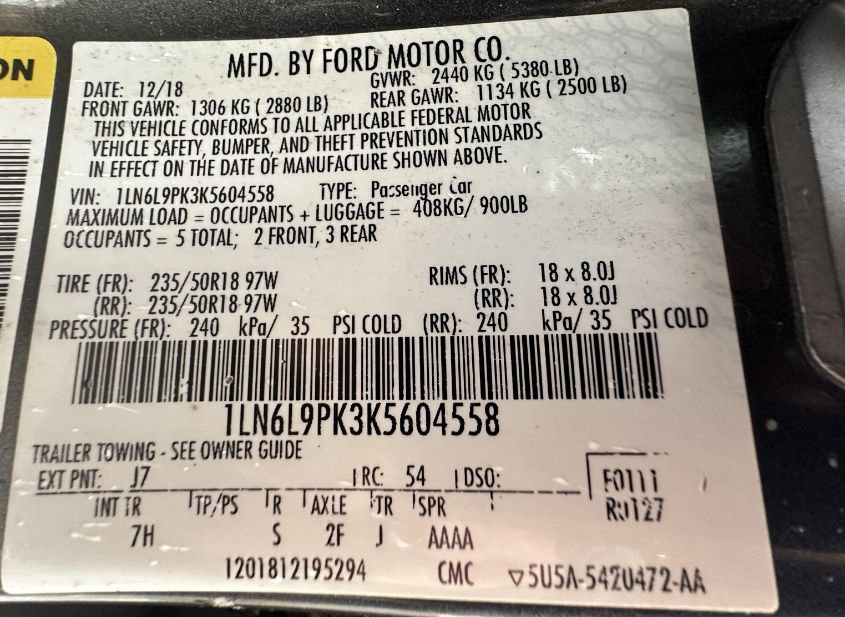 - VIN: 1LN6L9PK3K5604558