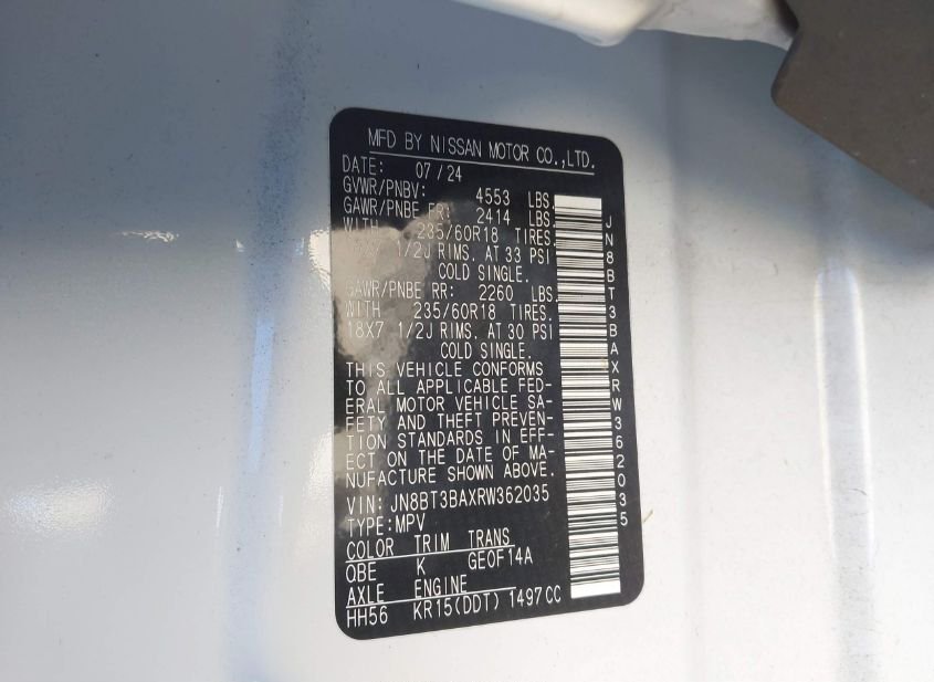 - VIN: JN8BT3BAXRW362035