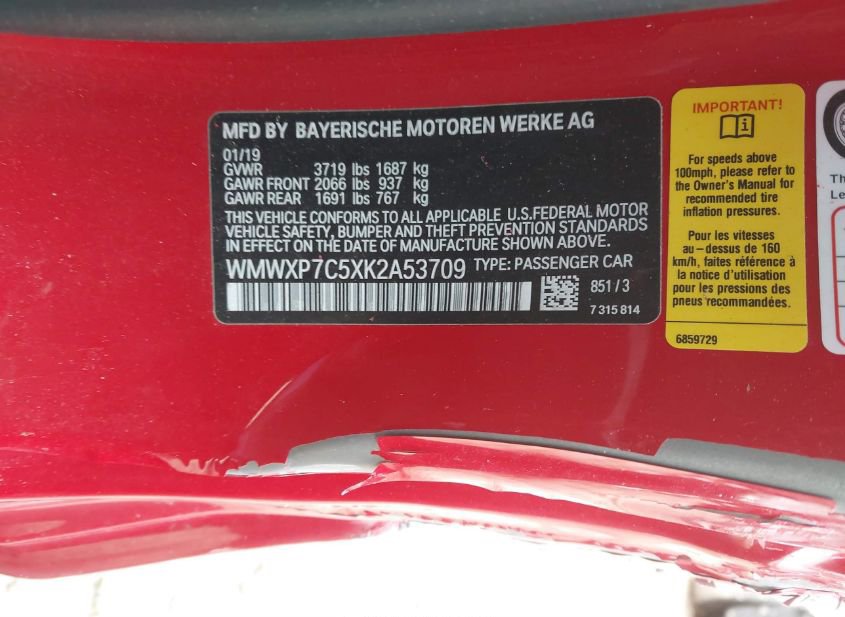 - VIN: WMWXP7C5XK2A53709