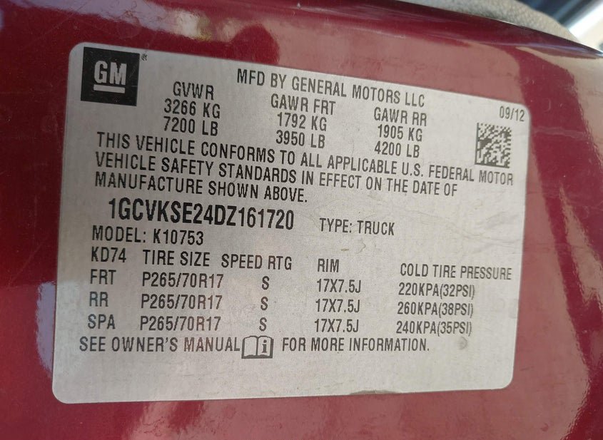 - VIN: 1GCVKSE24DZ161720