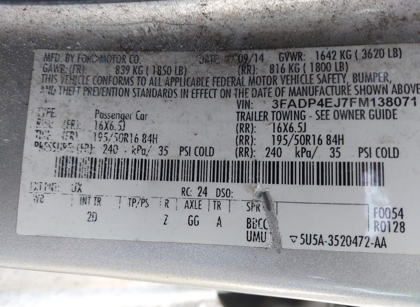 - VIN: 3FADP4EJ7FM138071