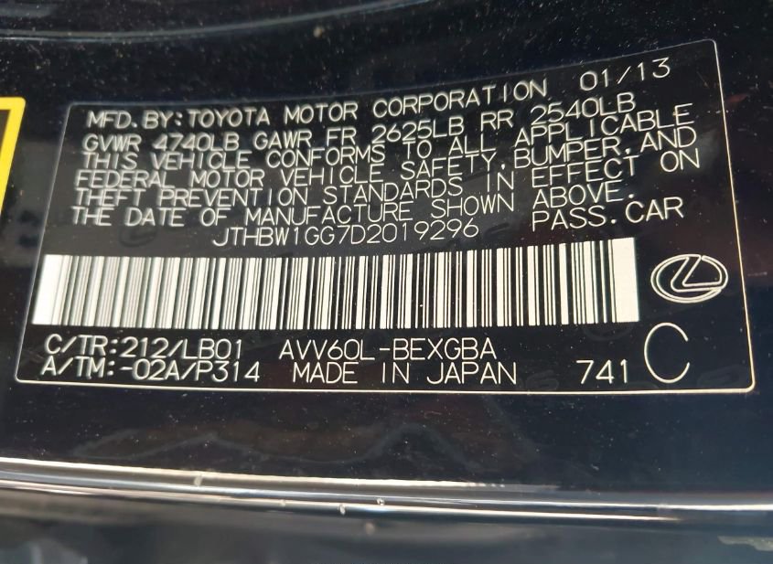 - VIN: JTHBW1GG7D2019296