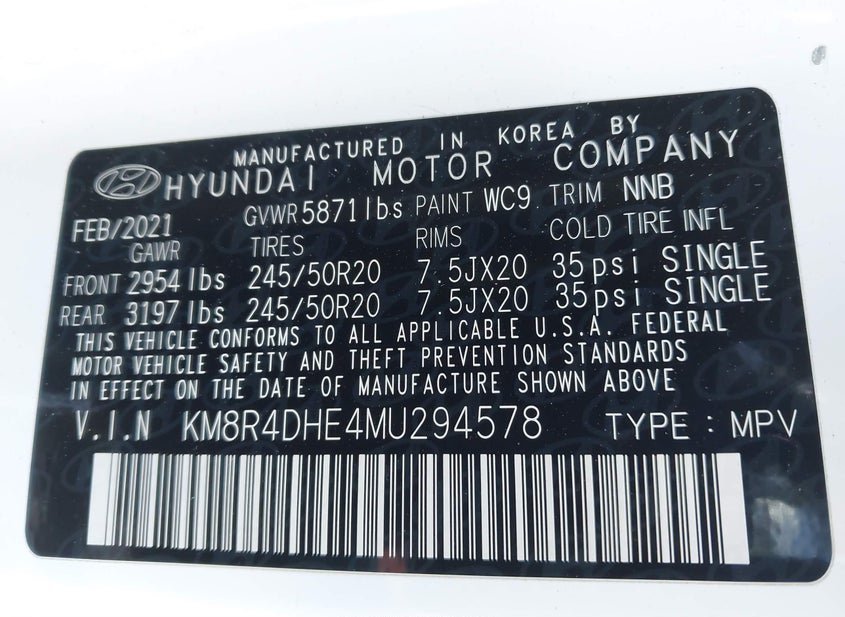 - VIN: KM8R4DHE4MU294578