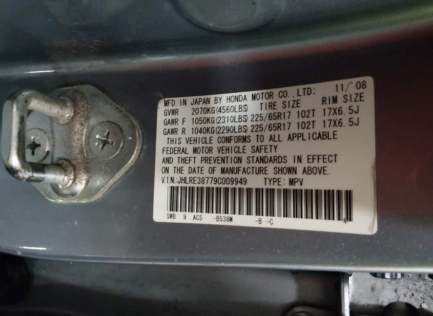- VIN: JHLRE38779C009949