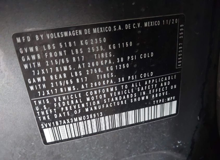 - VIN: 3VV1B7AX3MM038913