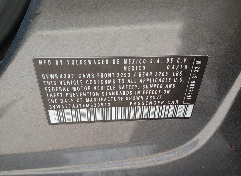 - VIN: 3VW4T7AJ2FM338513