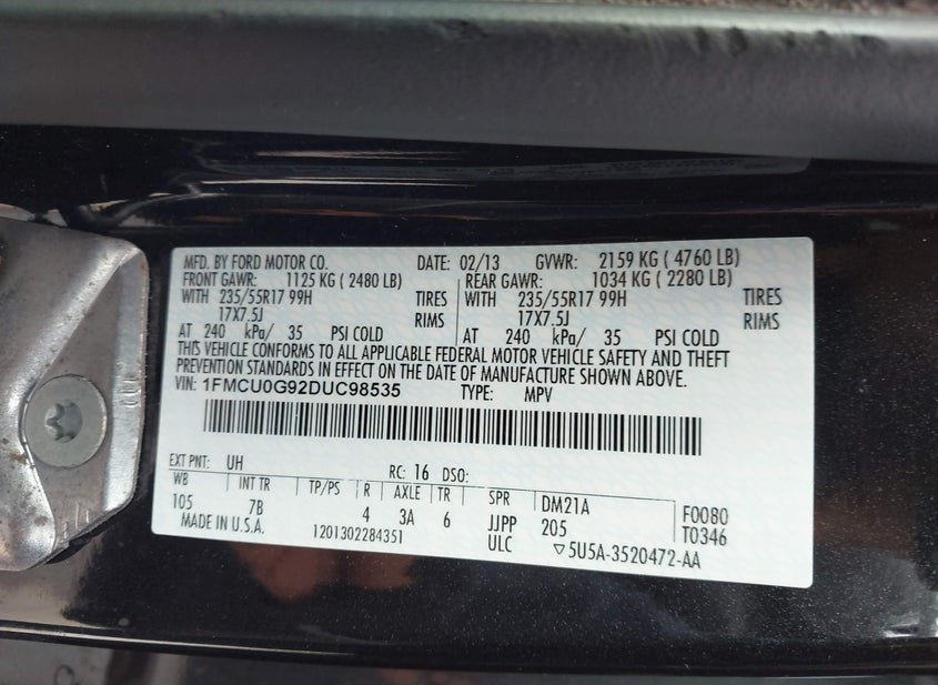 - VIN: 1FMCU0G92DUC98535