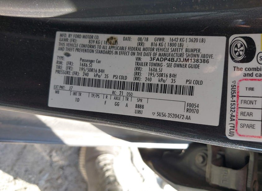- VIN: 3FADP4BJ3JM138386