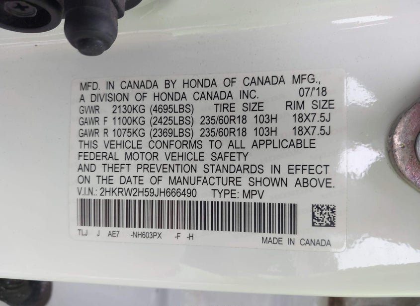 - VIN: 2HKRW2H59JH666490