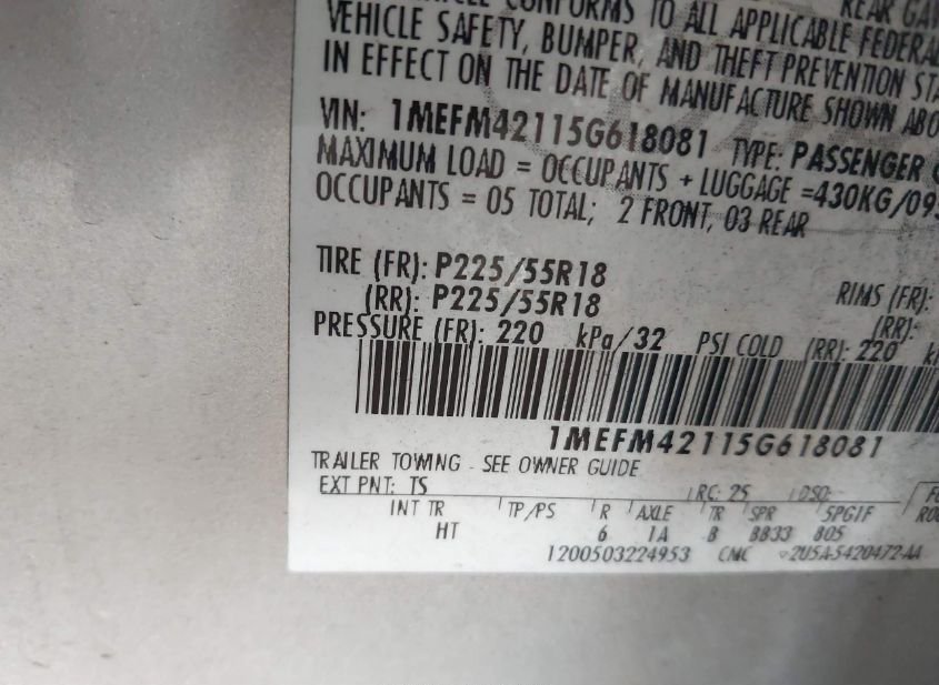 - VIN: 1MEFM42115G618081