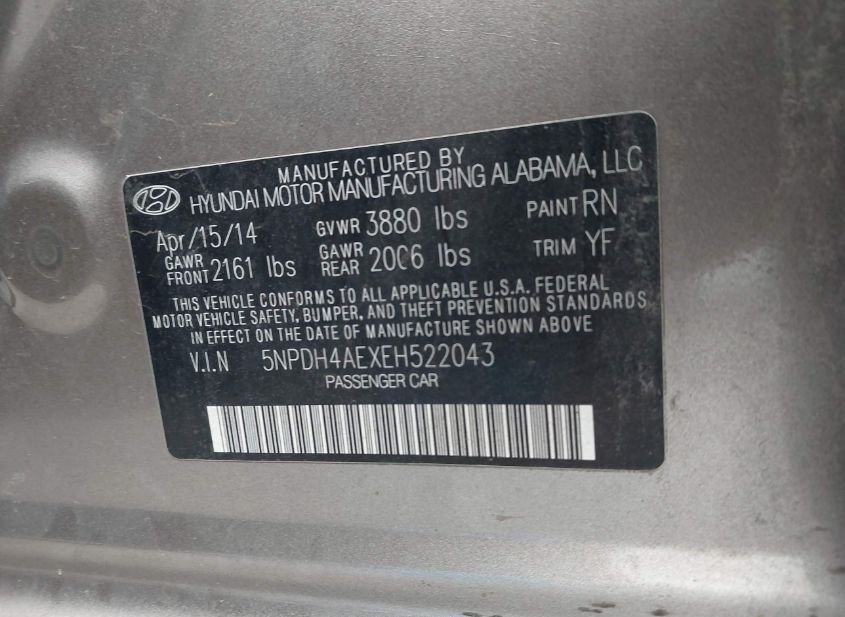 - VIN: 5NPDH4AEXEH522043