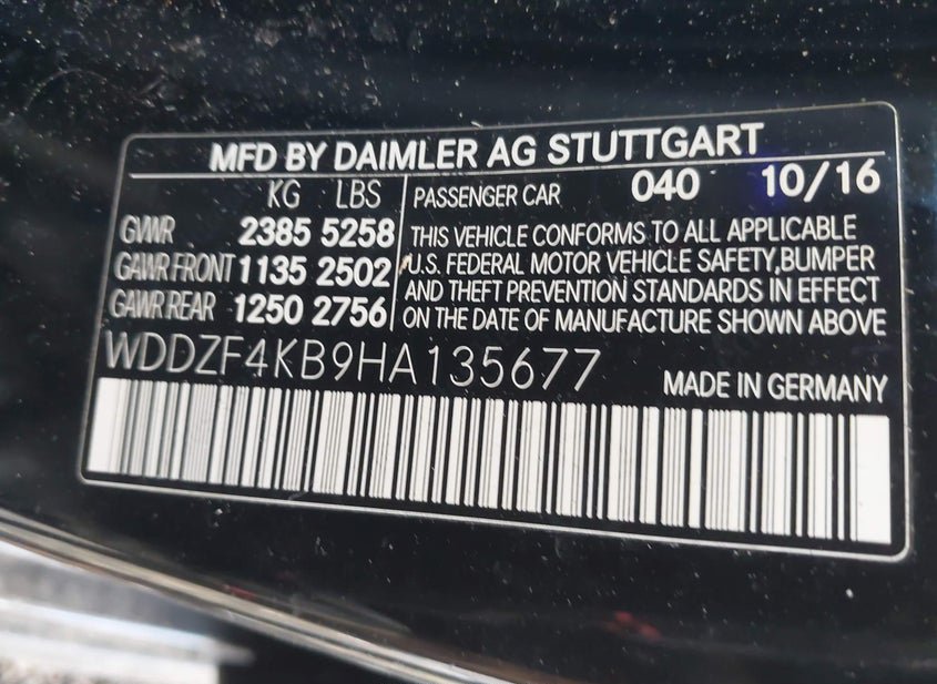 - VIN: WDDZF4KB9HA135677
