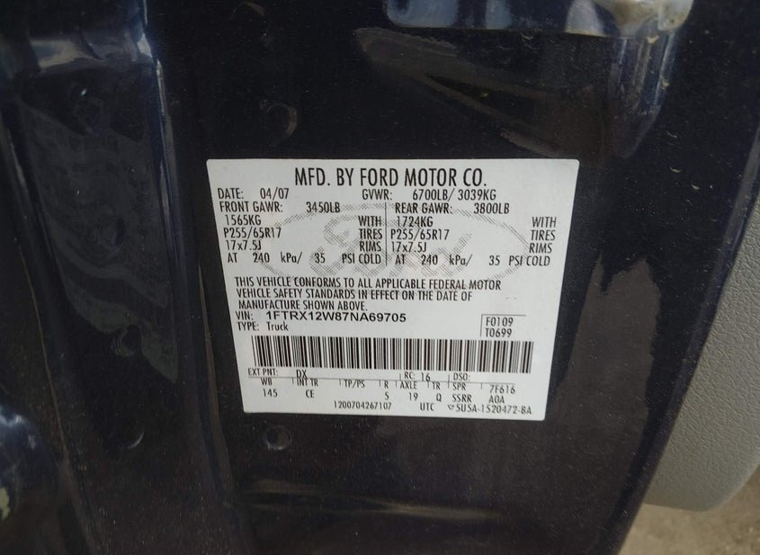 - VIN: 1FTRX12W87NA69705