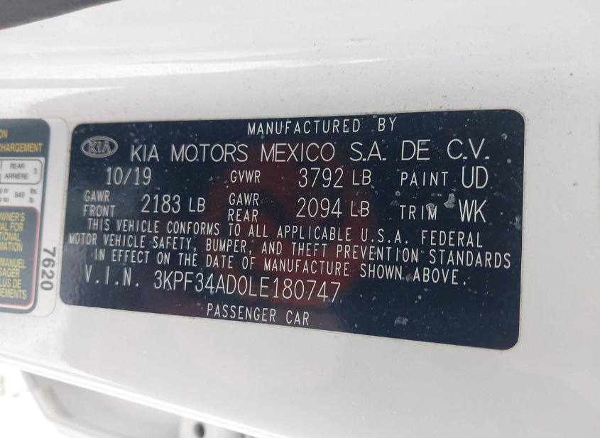 - VIN: 3KPF34AD0LE180747