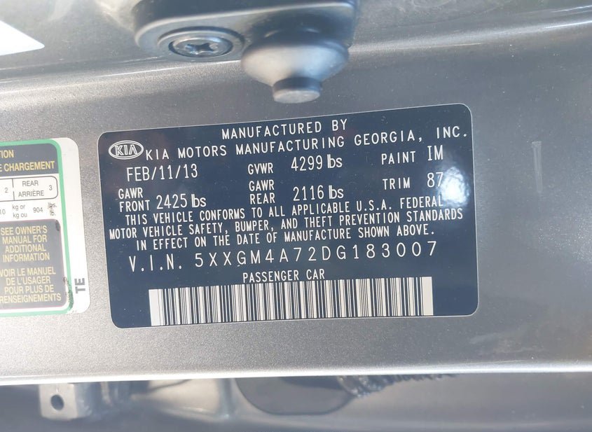 - VIN: 5XXGM4A72DG183007