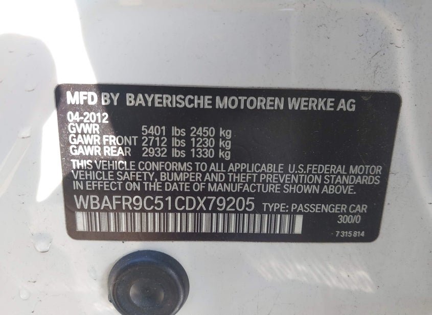 - VIN: WBAFR9C51CDX79205