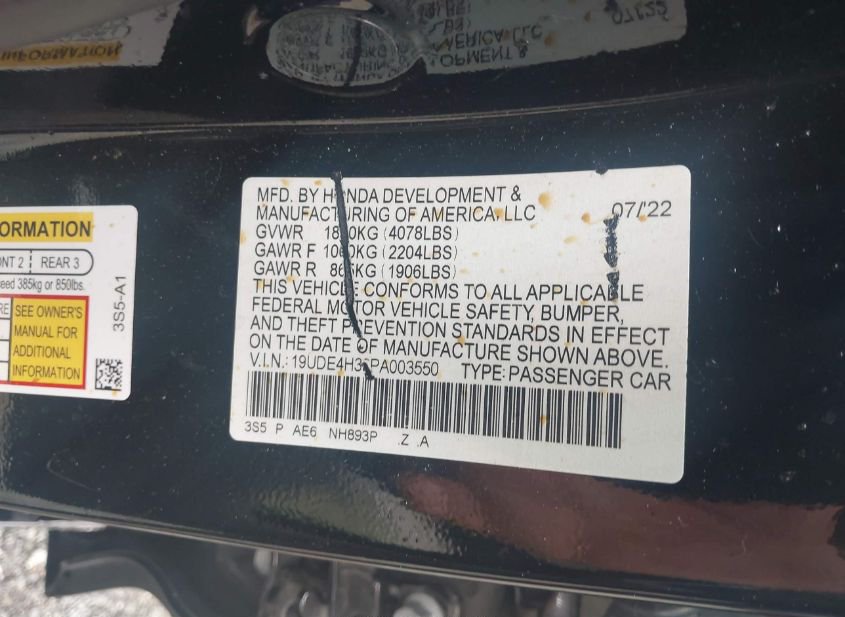 - VIN: 19UDE4H36PA003550