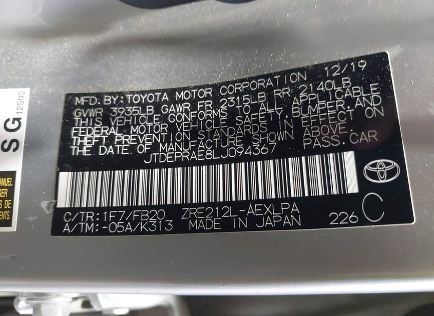 - VIN: JTDEPRAE8LJ094367
