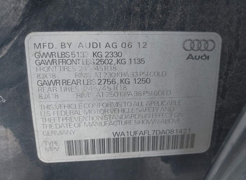 - VIN: WA1UFAFL7DA081421