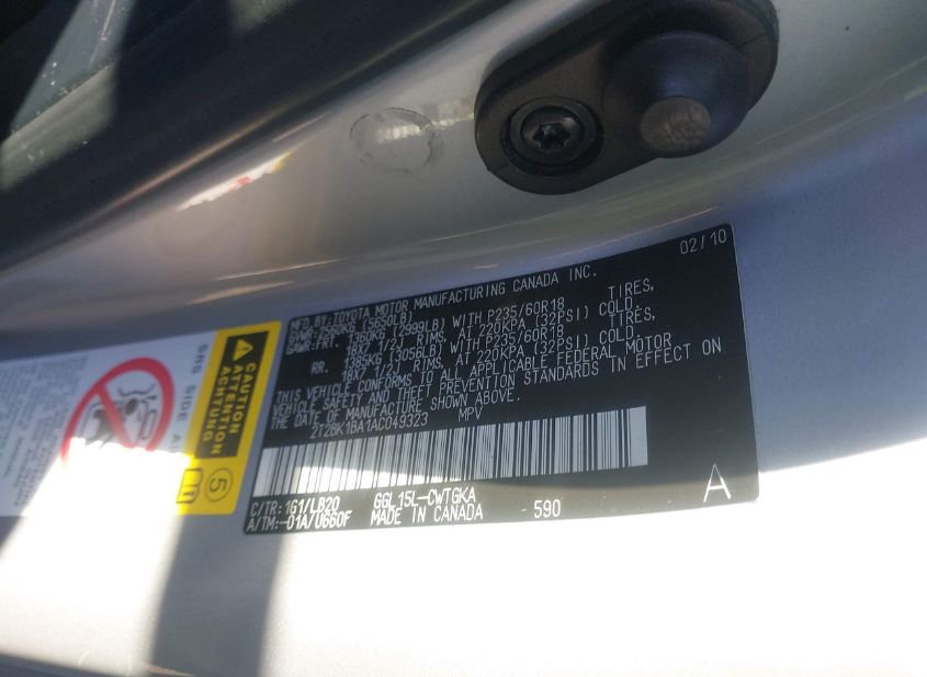 - VIN: 2T2BK1BA1AC049323