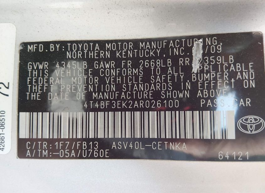 - VIN: 4T4BF3EK2AR026100