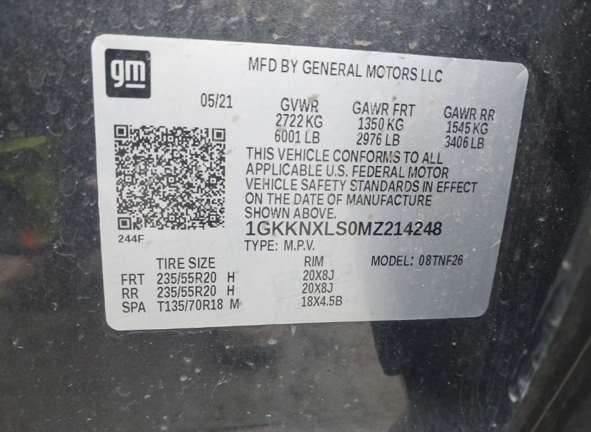 - VIN: 1GKKNXLS0MZ214248